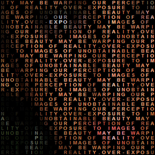 An experiment in displaying images using a grid of HTML text elements instead of pixels. Using PHP to transform the JPEG image file into HTML markup that is styled and coloured with CSS to recreate an abstracted version of the image. Because the markup is a series of text elements a message can be written within the abstracted image.